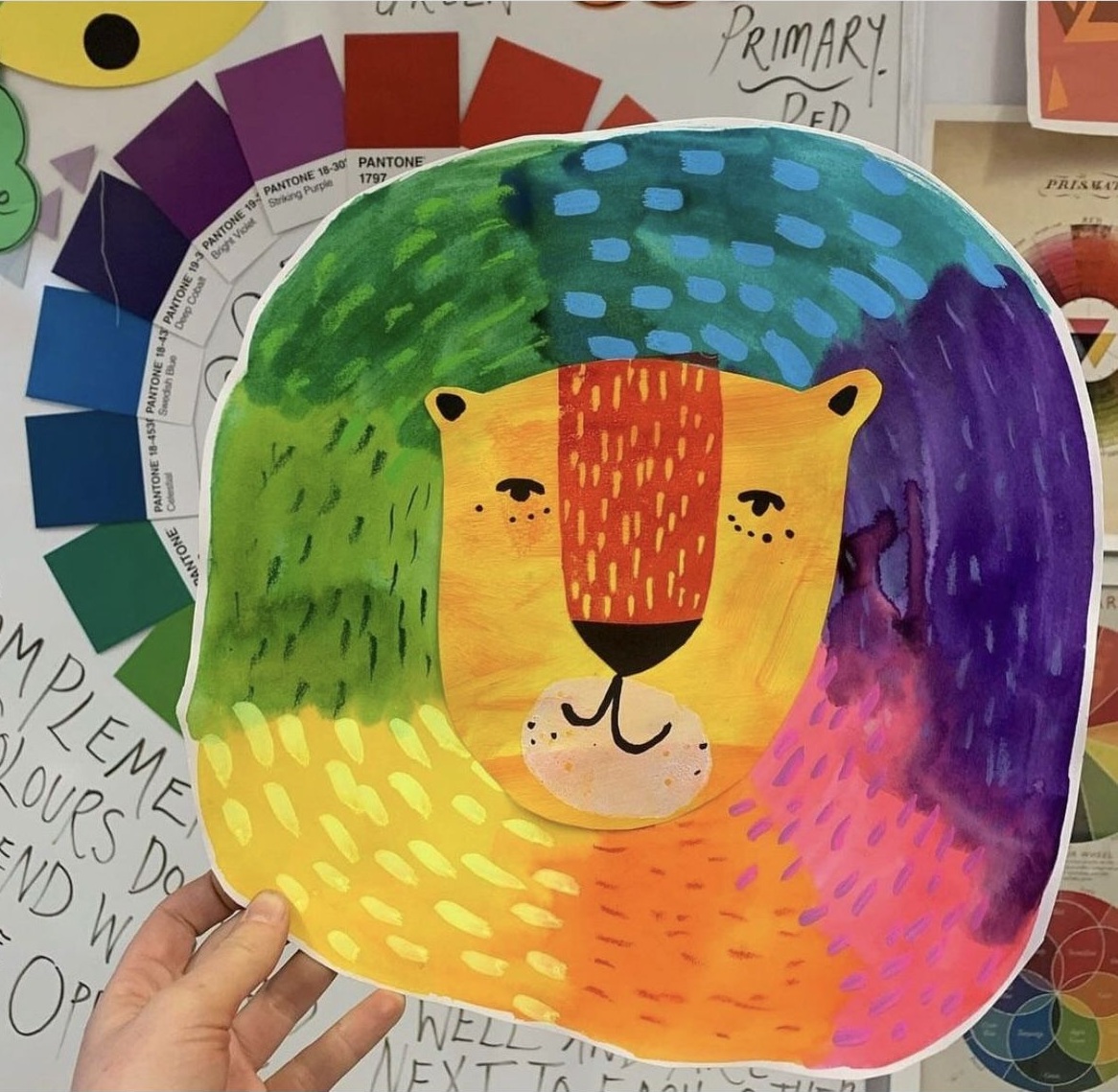 We’ll begin with a bold Color Wheel Lion’s Mane mixed-media artwork, where artists explore primary and secondary colors while creating a vibrant, textured mane full of personality. 🦁